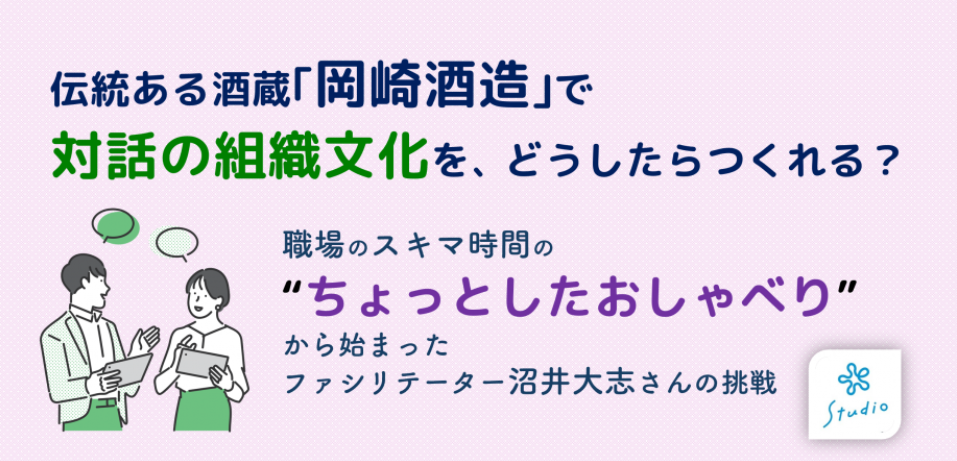 伝統ある酒蔵「岡崎酒造」で、対話の組織文化を、どうしたらつくれる? ~ 職場のスキマ時間の “ちょっとしたおしゃべり”から始まった、ファシリテーター沼井大志さんの挑戦~